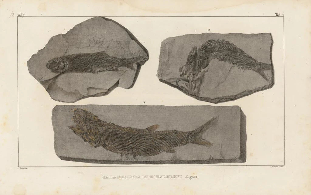 Forskning på fossile fisk Pl. 139 - Louis Agassiz