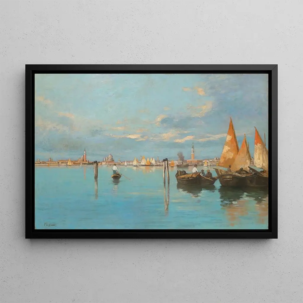 Vue de Venise : en symfoni af lys og vand Kunsttrykket af "Vue de Venise" af Pietro Fragiacomo tager os med til hjertet af den venetianske republik, hvor de glitrende reflekser af vandet danser med den gyldne sollys. Nuancerne af blå og grøn blander sig harmonisk, hvilket skaber en atmosfære, der er både fredelig og livlig. Teknikken med olie på lærred giver kunstneren mulighed for at fange de arkitektoniske detaljer i de venetianske bygninger, samtidig med at der skabes en fornemmelse af bevægelse gennem gondolerne, der glider over Canal Grande. Dette værk inviterer til eftertanke, hvor seeren næsten kan høre vandets hvisken og gondoliernes sang. Pietro Fragiacomo : en mester i venetiansk landskab Pietro Fragiacomo, aktiv i slutningen af det 19. århundrede, er kendt for sine lyse landskaber og scener fra det daglige liv i Venedig. Påvirket af impressionismen har han formået at forene præcisionen i detaljerne med en palette af strålende farver, der fanger den venetianske lysessens kerne. Fragiacomo tilbragte en stor del af sit liv i Venedig, hvilket har givet ham en dyb forståelse af denne unikke by. Hans arbejde, selvom det er mindre kendt end nogle af hans samtidiges, har sat et varigt præg i kunstens historie og vidner om Venedigs tidløse skønhed. En dekorativ erhvervelse med mange fordele Kunsttrykket af "Vue de Venise" er et ideelt dekorativt stykke til forskellige rum, hvad enten det er i en stue, et kontor eller et soveværelse. Dets trykkvalitet og trofasthed mod det originale værk gør det til et attraktivt valg for dem, der ønsker at tilføre et strejf af elegance til deres indretning. Med sine beroligende farver og sin rolige atmosfære inviterer dette lærred til drømme og flugt. Ved at tilføje dette kunsttryk til din samling giver du dit rum en varm og indbydende atmosfære, samtidig med at du fejrer kunsten og skønheden i Venedig.