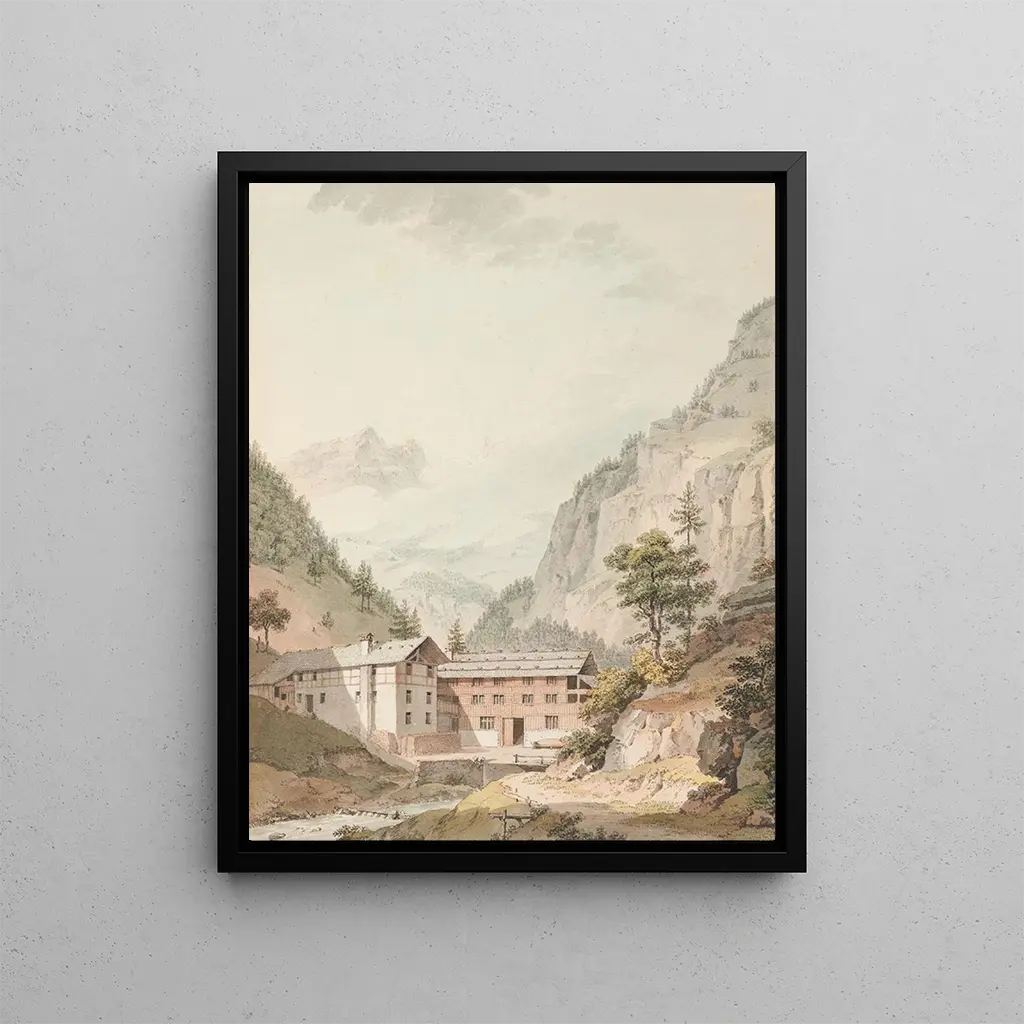 Oplev den elegante skønhed i dette unikke kunstværk, der er skabt af den berømte kunstner Johann Ludwig Aberli. Dette maleri fanger essensen af den fredelige landskabsscener, der er karakteristiske for Aberlis stil, og bringer en følelse af ro og harmoni til dit hjem eller kontor.