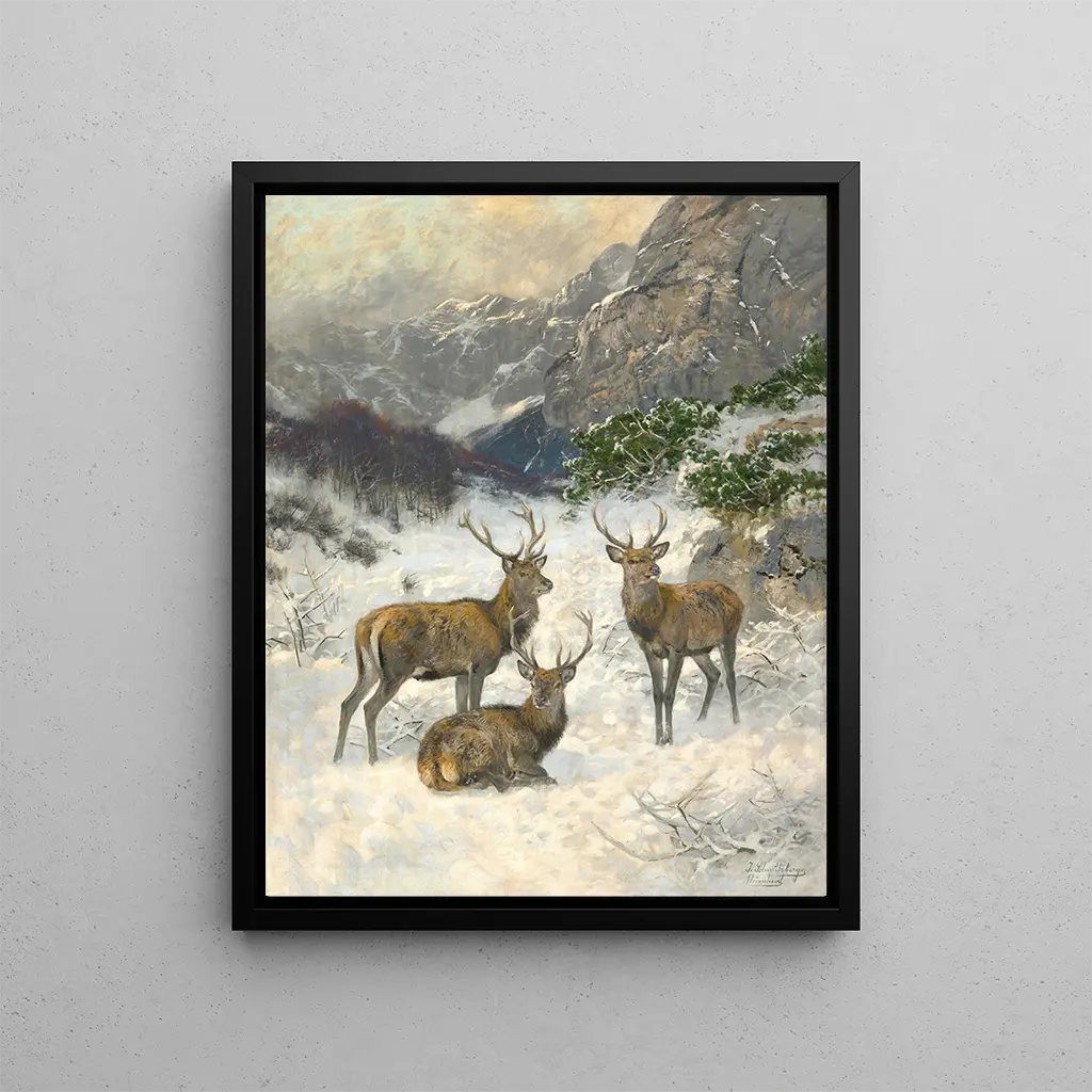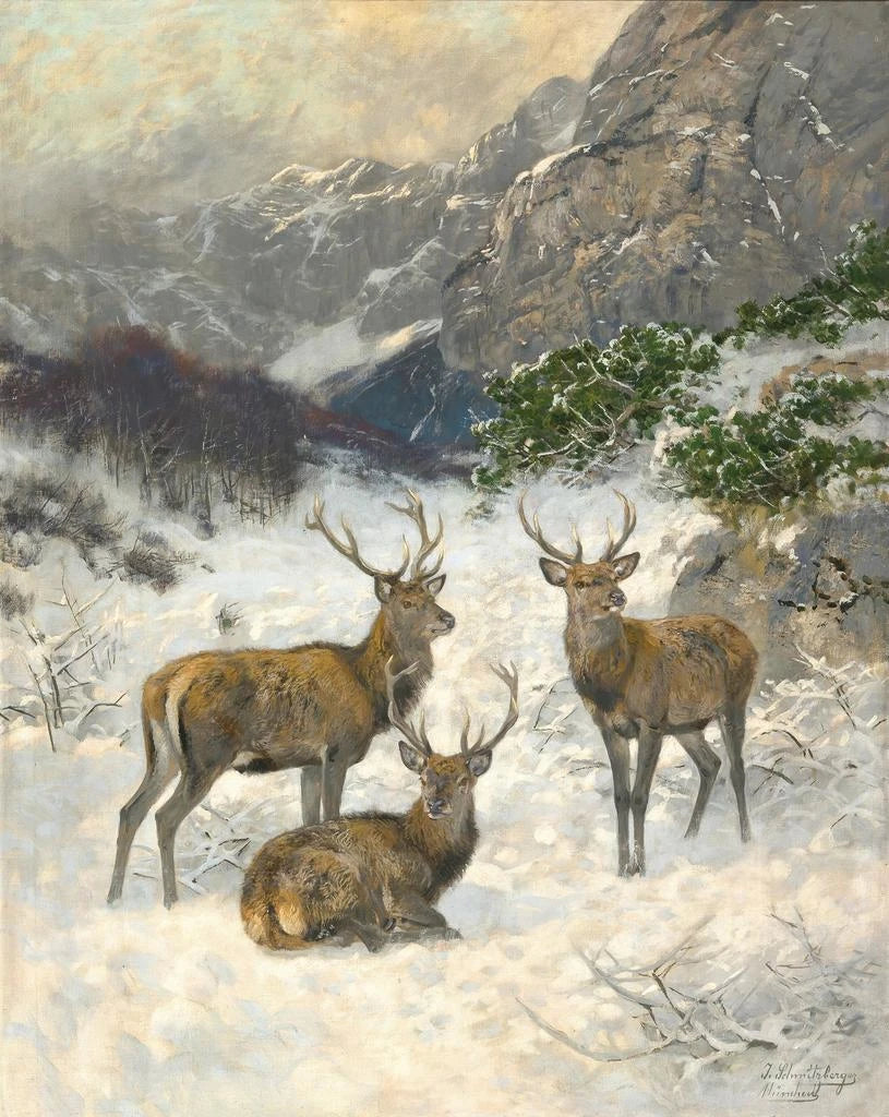En flok hjorte om vinteren - Josef Schmitzberger