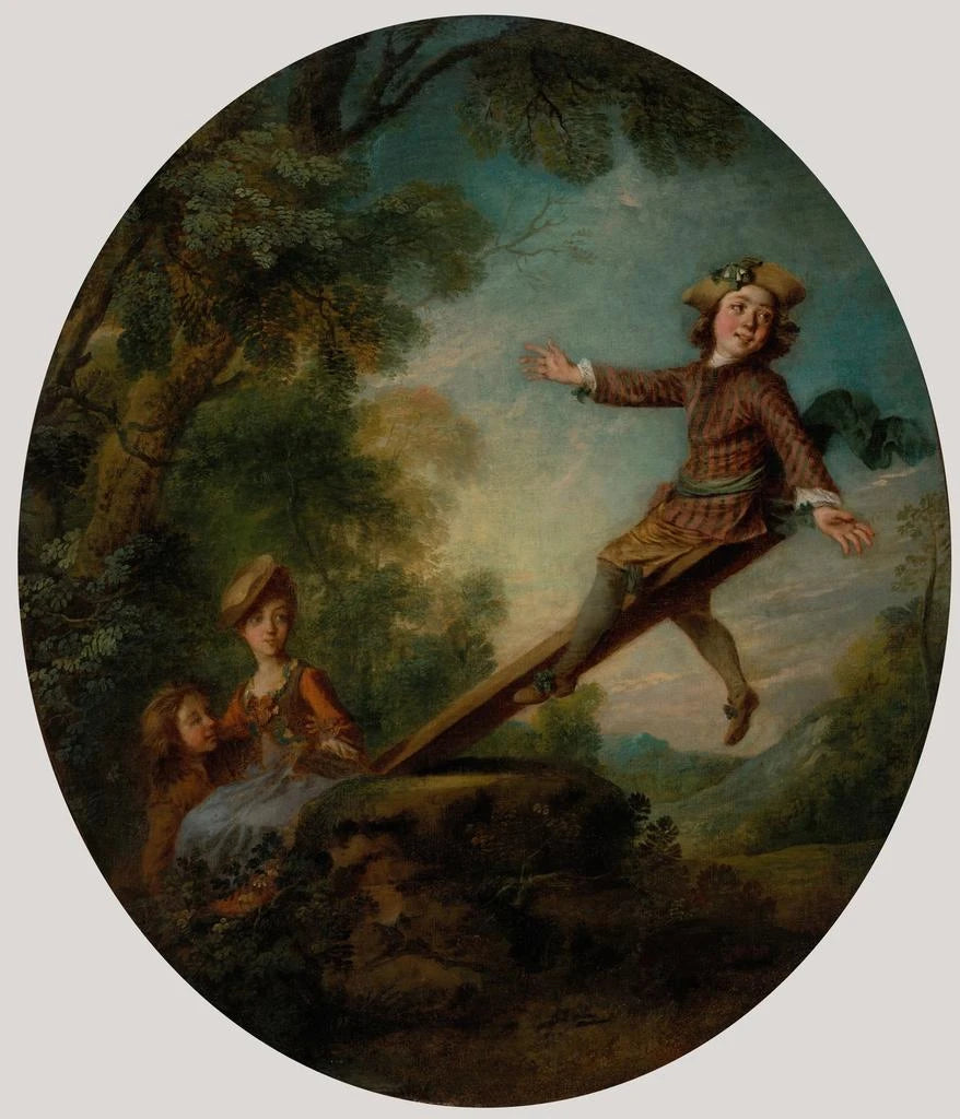 Nicolas Lancret, født i 1690, er en fransk maler, hvis arbejde ofte forbindes med rokoko-bevægelsen, kendetegnet ved elegance og lethed. Inspireret af Antoine Watteau, formåede Lancret at udvikle en unik stil, der skildrer personer i dagligdags øjeblikke, ofte præget af sensualitet og charme. Hans værk, rigt på farver og detaljer, afspejler ånden fra en tid, hvor kunsten havde til formål at underholde og forføre. La Balançoire, med sin muntre stemning, er et perfekt eksempel på hans evne til at fange glæden og den ubekymrede aristokratiske livsstil i det 18. århundrede.