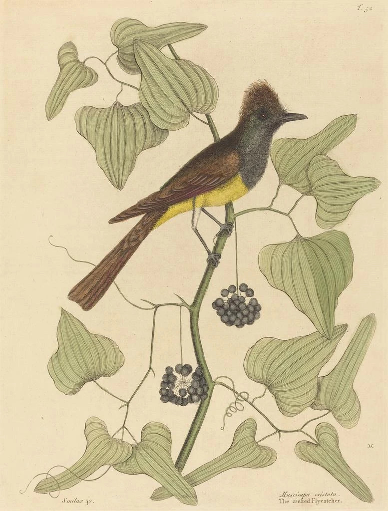 Den huppede musvåge Muscicapa cristata - Mark Catesby