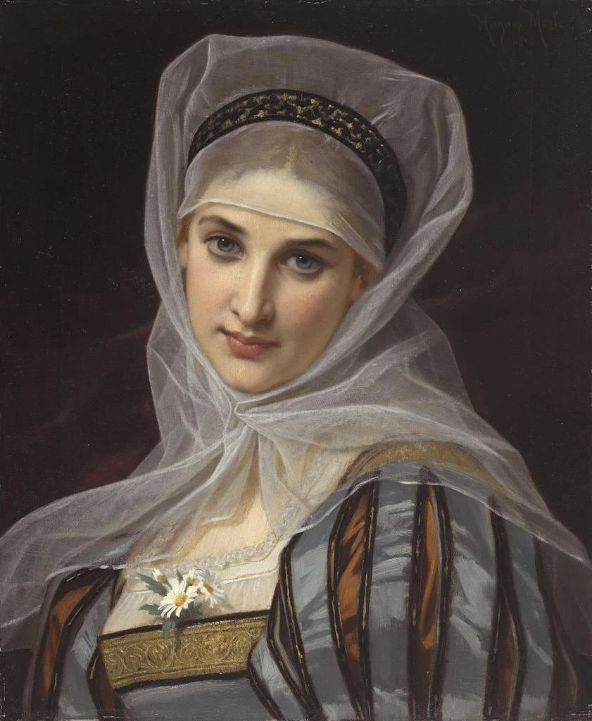 Oplev den elegante skønhed af denne smukke Marguerite-maleri af Hugues Merle. Perfekt til kunstelskere og samlere, der ønsker at tilføje et strejf af klassisk finesse til deres hjem eller kontor.