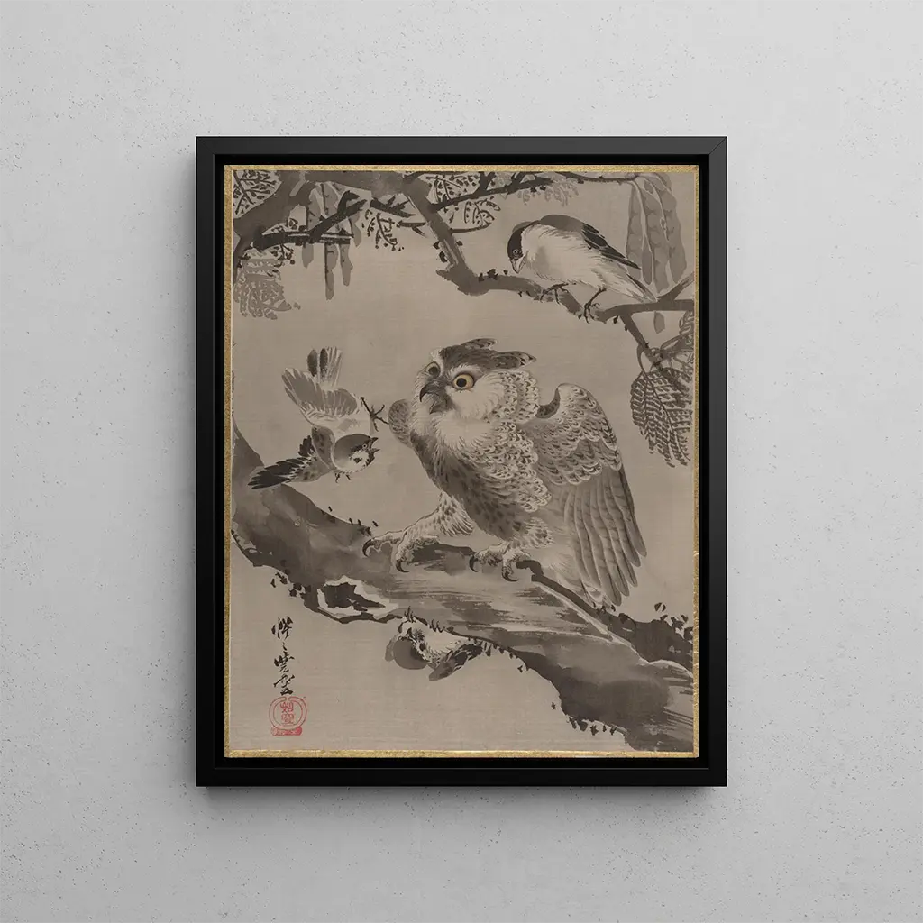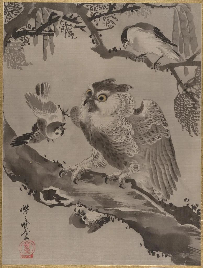 En ugle hånet af småfugle - Kawanabe Kyōsai