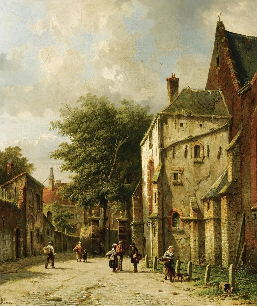 Reproduktion En scene de rue dans une ville néerlandaise - Adrianus Eversen – Introduktion fængslende
