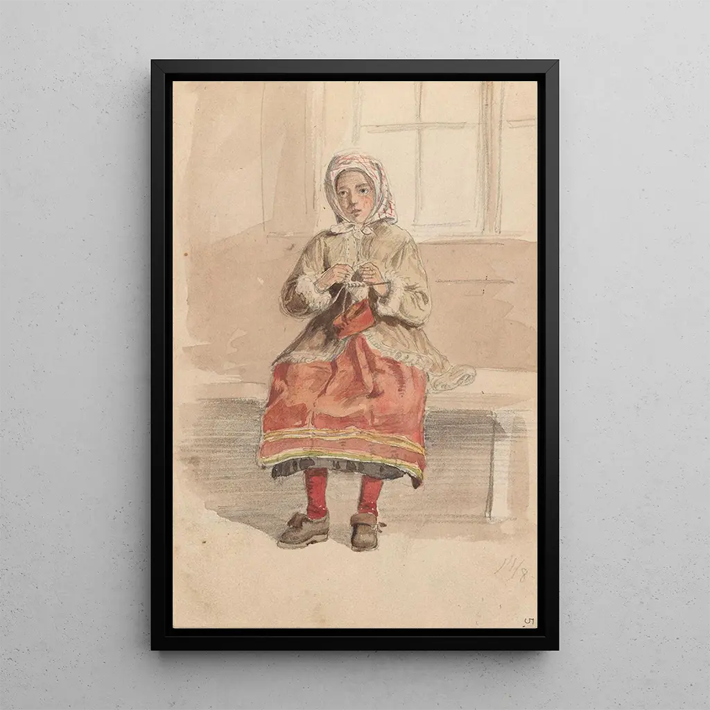 Kunsttryk | Ung kvinde strikker - Adolph Tidemand