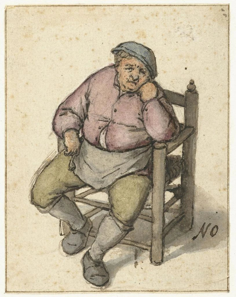 Kunsttryk | Mand sidder med en pibe - Adriaen van Ostade