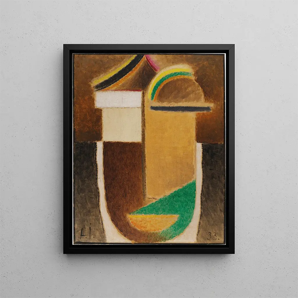 Kunsttryk af abstrakt hoved, konstruktivt hoved - Alexej von Jawlensky – Fascinerende introduktion I det fascinerende univers af moderne kunst skiller visse værker sig ud ved deres evne til at overskride tid og vække dybe følelser. "Abstrakt hoved, konstruktivt hoved" af Alexej von Jawlensky er en af disse kreationer, der fanger blikket og sindet. Dette værk, der befinder sig i krydsfeltet mellem abstraktion og ekspressionisme, inviterer os til at dykke ned i en verden, hvor former og farver blander sig for at give liv til indre følelser. Gennem dette kunsttryk bliver betragteren transporteret til en dimension, hvor kunst bliver et universelt sprog, der kan kommunikere ideer og fornemmelser uden behov for ord. Stil og særpræg ved værket Styrken ved "Abstrakt hoved, konstruktivt hoved" ligger i dets dristige stil og unikke karakter. Jawlensky, med sin nyskabende tilgang, bruger levende farver og geometriske former til at skabe et hoved, der, selvom det er abstrakt, antyder menneskelige træk. Konturerne er både bløde og kantede, hvilket antyder en dualitet mellem følelsens blidhed og tankens strenghed. Kunstneren leger med lys og skygge, hvilket skaber slående kontraster, der tilføjer dybde til værket. Dette stykke er en udforskning af identitet, et spejl af indre kampe og sjælens aspirationer. Farvepaletten, der spænder fra livlige røde til beroligende blå, fremkalder et bredt spektrum af følelser, fra passion til sindsro. Derfor er hvert blik på dette værk en invitation til introspektion, en søgen efter sig selv gennem former og farver. Kunstneren og hans indflydelse Alexej von Jawlensky, russiskfødt maler, er en af de ikoniske figurer i ekspressionismens bevægelse. Hans karriere, præget af rejser og møder med andre berømte kunstnere, har været en uophørlig søgen efter nye udtryksformer. Jawlensky formåede at etablere sig som en pioner i brugen af farve og form, hvilket har påvirket mange efterfølgende kunstnere. Hans værk, rigt og varieret, vidner om en konstant søgen efter sjælen, dens kompleksiteter og nuancer. Gennem