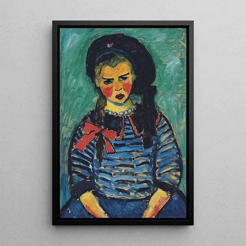Fille au ruban rouge : en fejring af kvindelighed Kunsttrykket Fille au ruban rouge af Alexej von Jawlensky er et livligt værk, der fanger essensen af kvindelighed gennem strålende farver og stiliserede former. Maleriet, med sin rigt teksturerede baggrund, fremhæver et kvindeligt ansigt, hvis træk er forenklede, næsten abstrakte. Nuancerne af rød og blå blander sig harmonisk, hvilket skaber en atmosfære, der er både blid og dynamisk. Tilstedeværelsen af den røde bånd, symbol på passion og liv, tiltrækker straks opmærksomheden og inviterer til en dyb refleksion over den følelse, der udspringer af det. Alexej von Jawlensky : en pioner inden for ekspressionisme Alexej von Jawlensky, kunstner af russisk oprindelse, spillede en afgørende rolle i udviklingen af ekspressionismen i begyndelsen af det 20. århundrede. Påvirket af tidens kunstneriske bevægelser formåede han at integrere elementer af spiritualitet og farve i sit arbejde. Hans karriere blev præget af ophold i Tyskland, hvor han omgås andre store kunstnere som Wassily Kandinsky. Skabelsesperioden for kunsttrykket Fille au ruban rouge finder sted i en kontekst, hvor kunsten søgte at udtrykke indre følelser frem for at afbilde virkeligheden nøjagtigt. Dette værk vidner om hans nyskabende tilgang og jagten på en transcendent skønhed. En dekorativ tilføjelse med mange fordele Kunsttrykket af maleriet Fille au ruban rouge er et dekorativt stykke, der vil berige ethvert rum, uanset om det er en stue, et kontor eller et soveværelse. Dets trykkvalitet sikrer en trofast gengivelse af farver og detaljer fra det originale værk, hvilket gør det muligt at nyde dets æstetiske appel fuldt ud. Ved at integrere dette lærred i din indretning tilføjer du et strejf af elegance og modernitet, samtidig med at du skaber samtaler om kunst og ekspressionisme. Dette maleri er ikke blot et dekorativt element, men også en kilde til inspiration og følelser i hverdagen.