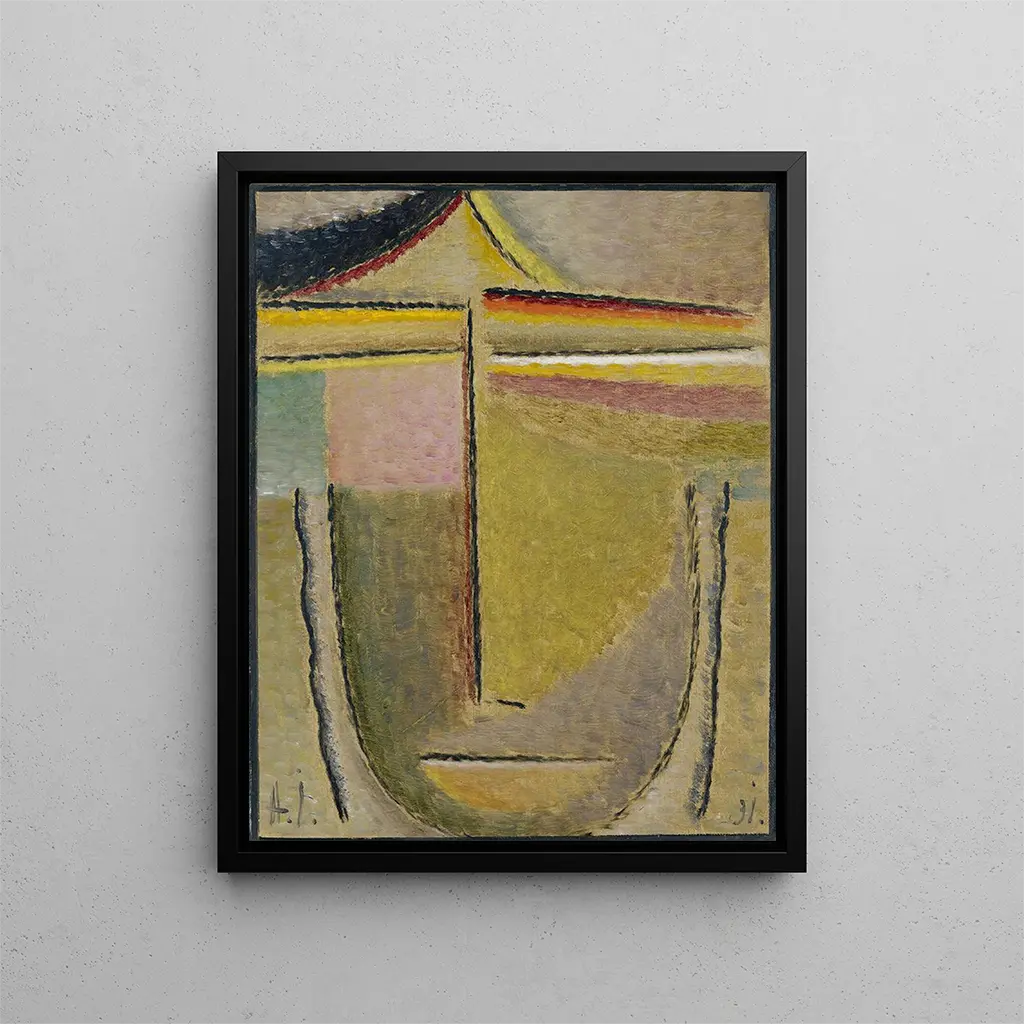 Reproduktion Résumé Head Apollo - Alexej von Jawlensky – Introduktion fængslende I det pulserende univers af moderne kunst skiller værket "Résumé Head Apollo" af Alexej von Jawlensky sig ud med sin dristighed og følelsesmæssige dybde. Dette ikoniske stykke, der tilhører ekspressionismen, inviterer seeren til en indre udforskning gennem et stiliseret ansigt, der overskrider realitetens grænser. Fremstillingen af Apollo, kunstens og skønhedens gud, fremkalder en søgen efter sandhed og harmoni, mens den leger med livlige farver og forenklede former. Kunsttrykket af dette værk giver mulighed for at dykke ned i en verden, hvor kunst bliver en refleksion over den menneskelige sjæl, en invitation til at føle snarere end at forstå. Stil og eneståendehed af værket Alexej von Jawlenskys stil er kendetegnet ved en dristig brug af farver og en forenkling af former, der sammen skaber en unik atmosfære. I "Résumé Head Apollo" overlapper de livlige nuancer af blå, rød og gul for at danne et ansigt, der både er velkendt og mærkeligt abstrakt. Denne farvevalg, der ikke er tilfældig, har til formål at udtrykke dybe følelser og fremkalde sanser snarere end realistiske fremstillinger. Den måde, Jawlensky dekonstruerer ansigtets træk på ved at reducere dem til geometriske former, vidner om hans ønske om at fange essensen af sit motiv. Denne tilgang, der leger med abstraktion, er karakteristisk for hans værk og understreger hans rolle som pioner inden for ekspressionismen. Kunstneren og hans indflydelse Alexej von Jawlensky, født i Rusland og naturaliseret tysk, formåede at præge sin tid med en nyskabende tilgang til maleriet. Inspireret af forskellige kunstneriske bevægelser, fra fauvisme til ekspressionisme, udviklede han en stil, der er hans egen, og som kombinerer spiritualitet og modernitet. Jawlensky var medlem af gruppen "Der Blaue Reiter", der fremmede en vision af kunst som et middel til at udtrykke indre følelser. Hans arbejde har inspireret mange samtidige kunstnere, og hans udforskning af ansigter og følelser har banet vejen for nye former for kunstnerisk udtryk. Ved at integrere elementer af sin