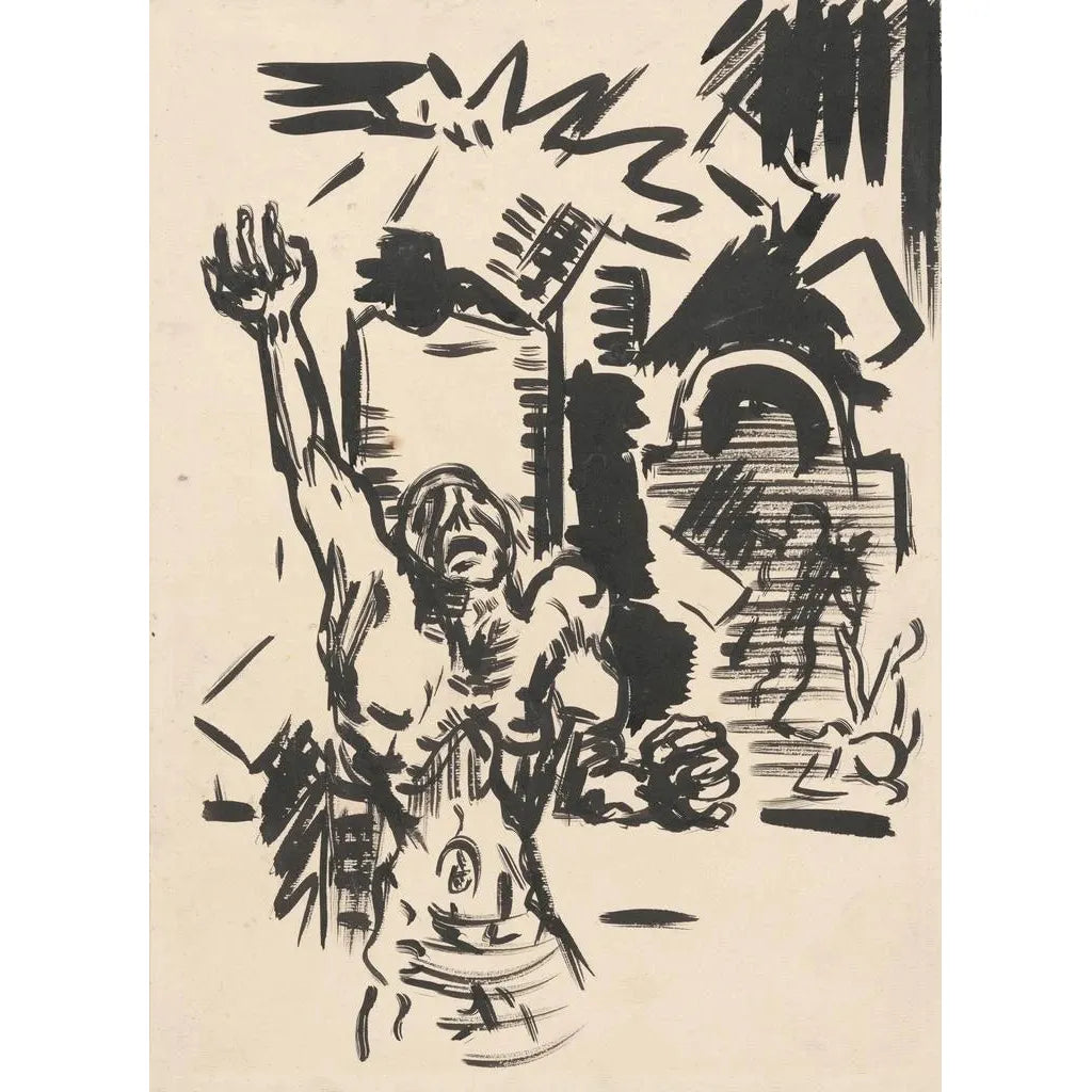 Protestation : et kunsttryk af Arnold Peter Weisz-Kubínčan, der kraftfuldt illustrerer menneskelige kampe og aspirationer. Lærredet viser en palette af livlige farver, hvor de røde og sorte dominerer, symboliserende passion og vrede. De udtryksfulde og dynamiske menneskefigurer synes at rejse sig mod uretfærdighed, fangende et øjeblik af tydelig spænding. Kunstnerens teknik, der kombinerer det figurative med abstrakte elementer, styrker den følelsesmæssige impact af scenen og inviterer betragteren til at føle vigtigheden af dette protestbudskab.