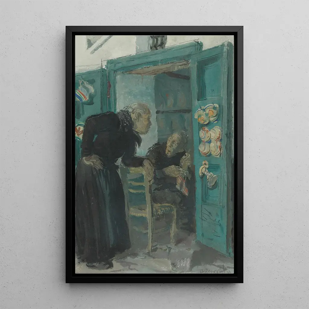 Kunsttrykket af La Conversation Capri af Alexandre Iacovleff fremkalder en intim scene, hvor to figurer engagerer sig i en stilfærdig udveksling. De varme farver og nuancer af blå skaber en rolig, næsten meditativ atmosfære. Kunstnerens teknik, der kombinerer realisme og impressionistiske strejf, giver liv til denne komposition, hvilket gør det muligt for betragteren at føle den palpable følelse mellem personerne. Hvert detalje, fra ansigtsudtryk til klædernes folder, er omhyggeligt arbejdet, hvilket inviterer til en langvarig betragning af dette værk fyldt med mening.