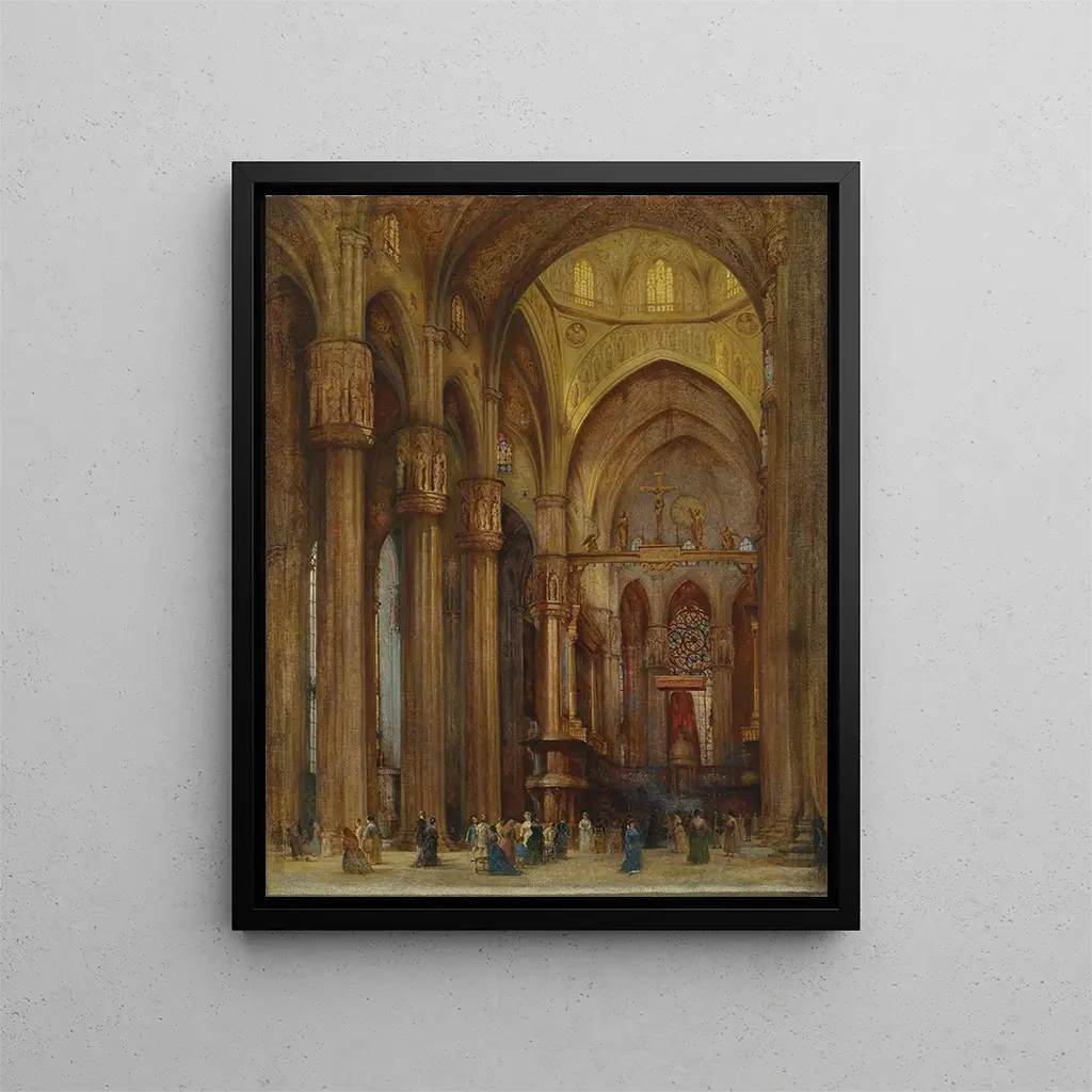 I det rige kunstunivers formår nogle værker at fange essensen af et sted, at afsløre dets skønhed og storhed. Kunsttrykket Vue de la cathédrale de Milan - Franz Alt er uden tvivl et af disse værker. Det transporterer os til hjertet af Milano, denne italienske metropol med sine mange facetter, hvor katedralen, juvelen i gotisk arkitektur, majestætisk rejser sig. Alt, med sin kunstneriske følsomhed, inviterer os til at betragte ikke kun den imponerende struktur af dette monument, men også den pulserende atmosfære, der omgiver det. Hans maleri dykker os ned i et suspendert øjeblik, hvor lys og skygge leger over de arkitektoniske detaljer, og dermed afslører den tidløse pragt af dette ikoniske bygningsværk.