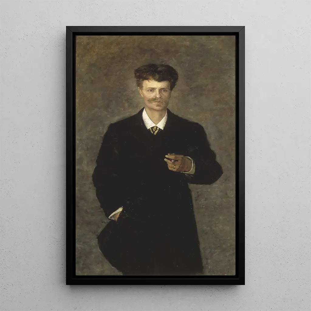 Kunsttrykket af August Strindberg, den berømte svenske dramatiker og maler, afslører en slående psykologisk dybde. De mørke farver og de energiske penselstrøg fremkalder en atmosfære af spænding og melankoli. Dette lærred, både introspektivt og udtryksfuldt, fanger essensen af en mand, der er i kamp med sine indre dæmoner. De omhyggelige detaljer i ansigtet, samt valget af nuancer, fordyber betragteren i et univers, hvor kunst og lidelse mødes. Kompositionen, både enkel og kraftfuld, inviterer til en langvarig eftertanke, hvilket gør dette værk til et ægte spejl af den menneskelige sjæl.