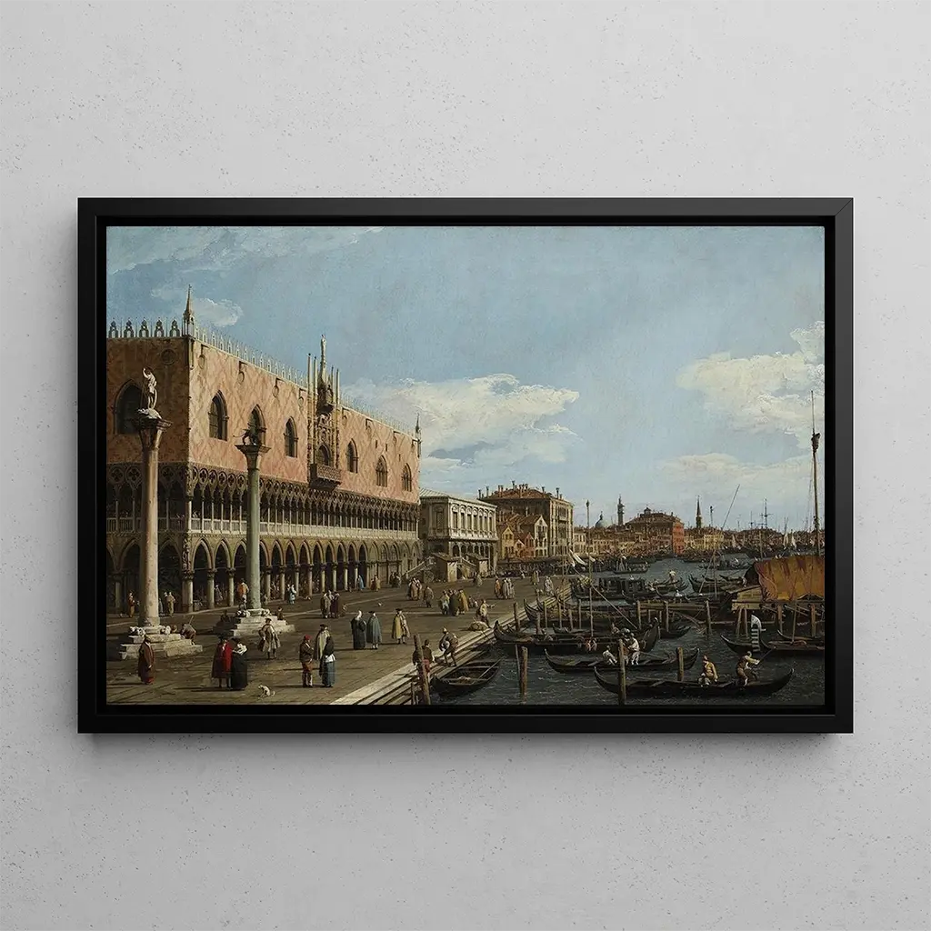 Kunsttrykket af Canaletto, "Venise Riva degli Schiavoni", dykker ned i den pulserende atmosfære i kanalbyen. De varme og lyse farver, typiske for den venetianske stil, oplyser scenen, mens refleksionerne i vandet tilføjer en næsten magisk dimension. Canaletto's teknik, med sine omhyggelige detaljer og kontrollerede perspektiv, giver en følelse af Venedigs arkitektoniske storhed. Hvert skib, hver forbipasserende på promenade, vækker minder om dagligdagen i denne ikoniske by, og inviterer til opdagelse og drømmeri.