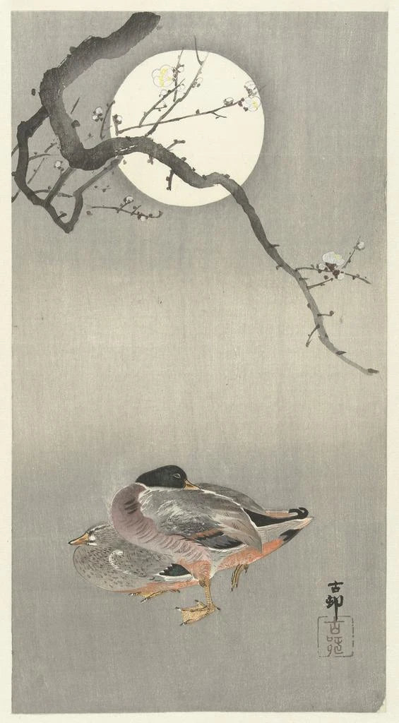 Kunsttryk | Andefugle ved fuldmåne - Ohara Koson