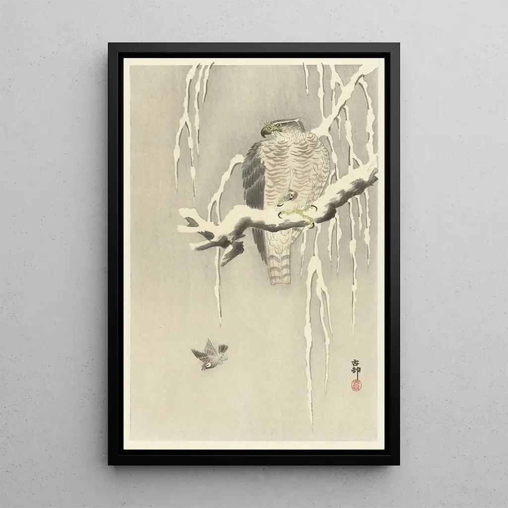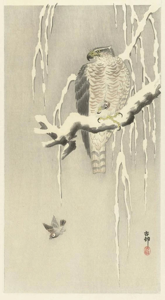 Kunsttryk | Fågel med fanget spurv - Ohara Koson