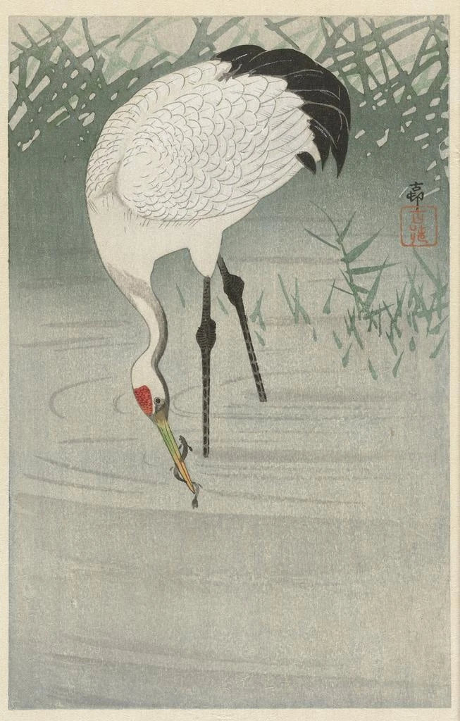 Kunsttryk | Grue pêchant dans l'eau peu profonde - Ohara Koson