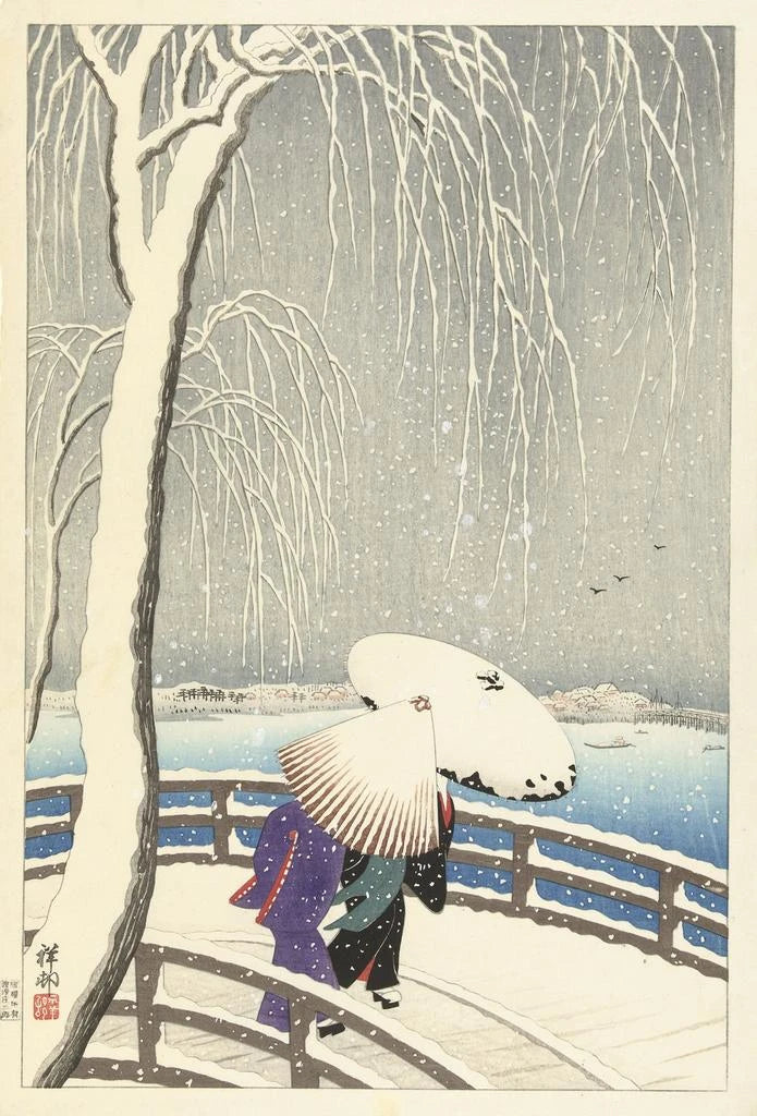 Kunsttryk | I sneen på Yanagibashi - Ohara Koson
