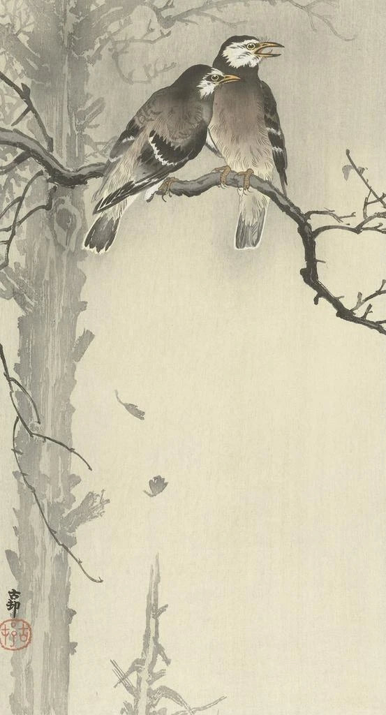 Kunsttryk | To gråspurve - Ohara Koson