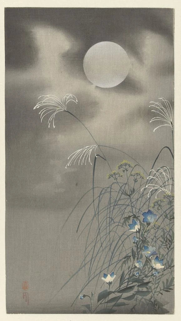 Kunsttryk | Urter og blomster ved fuldmåne - Ohara Koson