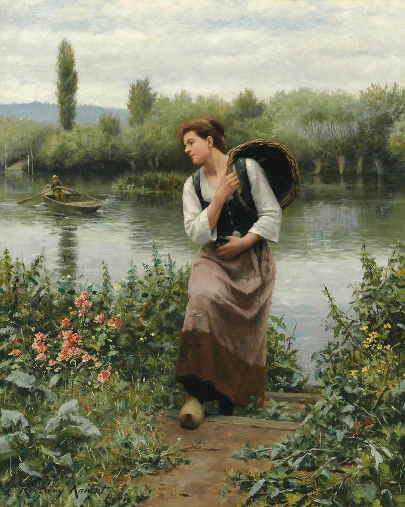 Kunsttryk | En kvinde med en kurv - Daniel Ridgway Knight