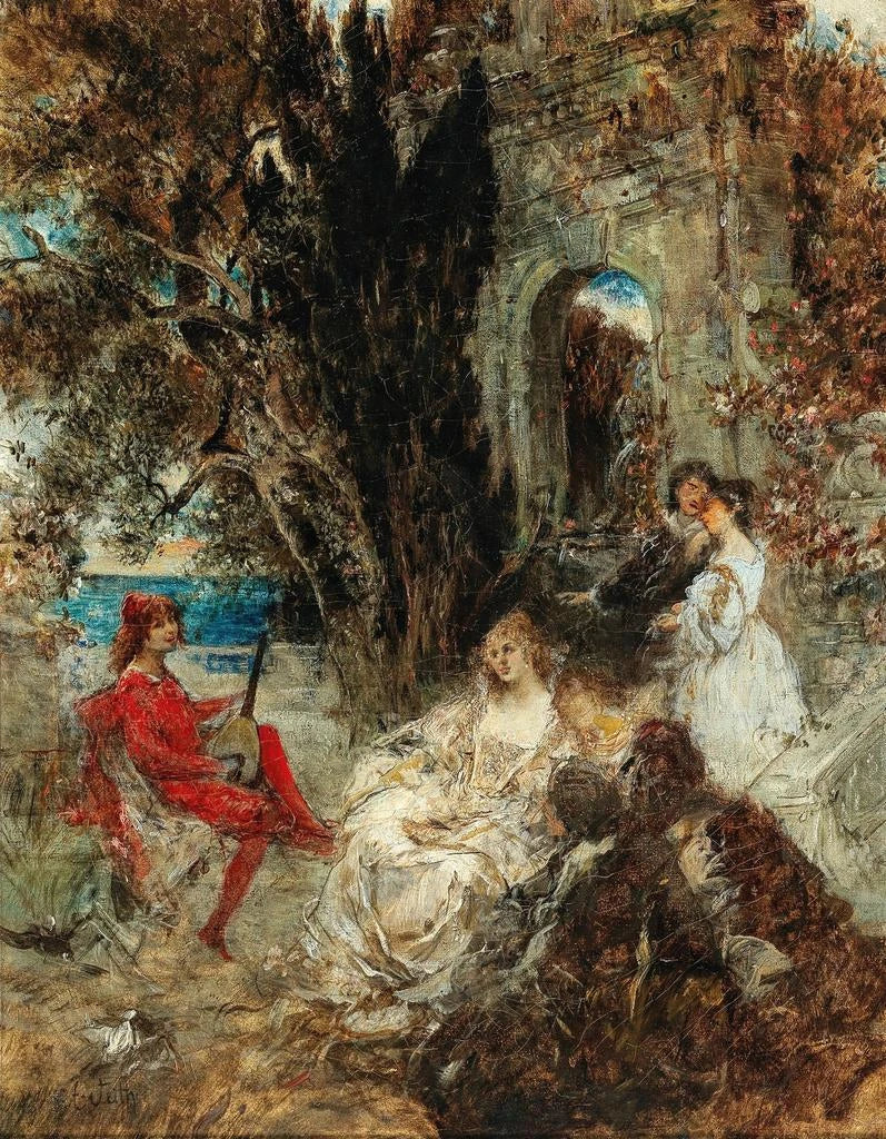 I det store panorama af kunsthistorien skiller visse værker sig ud ved deres evne til at fange øjeblikke af skønhed og følelser. "Sérénade - Eduard Veith" er en af disse kreationer, der transporterer os til en verden, hvor farver og former smelter sammen for at fremkalde en atmosfære, der er både blid og fortryllende. Dette værk, præget af romantik, fremkalder en intim scene, hvor musikken synes at stige ud af lærrederne for at omslutte betragteren. Ved at betragte dette kunsttryk føler man næsten ekkoet af en serenades toner, en invitation til drømme og eftertanke.