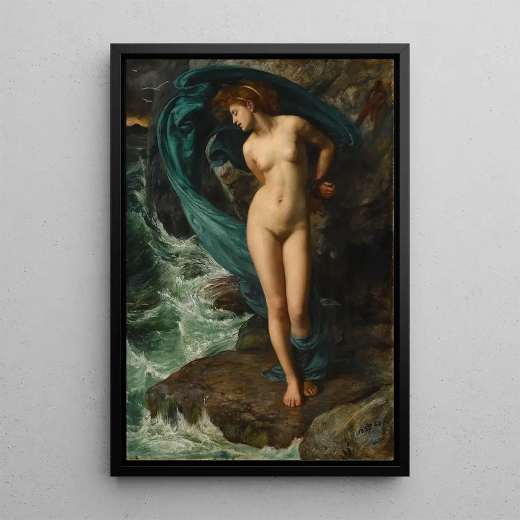 I dette fængslende værk dykker Edward John Poynter ned i en mytologisk verden, hvor skønhed og tragedie mødes. Kompositionen skildrer Andromède, bundet til en klippe, omgivet af et tumultagtigt havlandskab. De livlige farver og de omhyggelige detaljer i hendes klædedragt står i kontrast til de mørke nuancer i baggrunden, hvilket skaber en atmosfære, der er både dramatisk og poetisk. Poynter anvender en oljemaleri-teknik, der fremhæver lysstyrken i farvetonerne og bringer denne mytiske scene til live. Værket inviterer betragteren til at beundre både skønheden og lidelsen hos protagonisten, samtidig med at det vækker universelle temaer som ofring og forløsning.