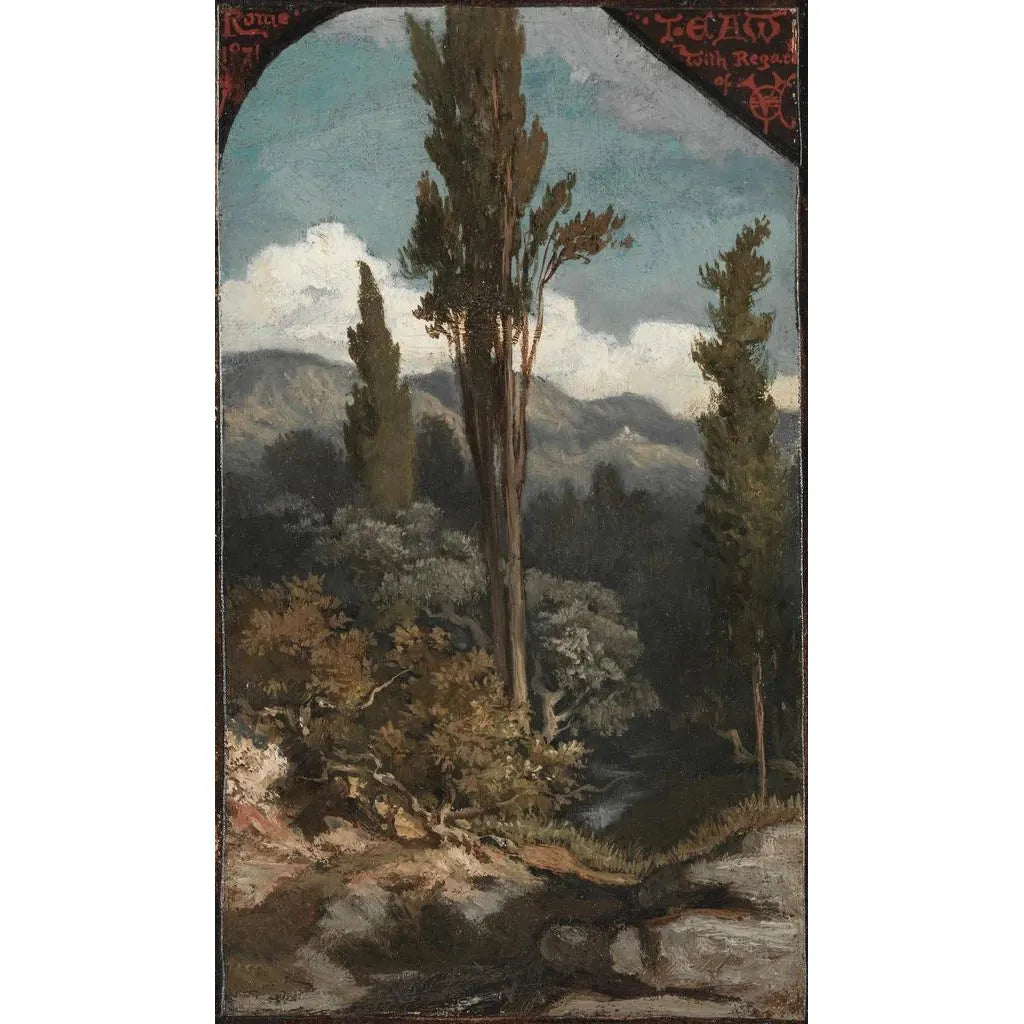 Elihu Vedder, kunstner fra det 19. århundrede, betragtes ofte som en forløber for symbolismen i USA. Påvirket af europæiske kunstbevægelser, formåede han at integrere mystiske og poetiske elementer i sit værk. Hans karriere blev præget af rejser i Europa, hvor han blev inspireret af skønheden i italienske landskaber og den klassiske kultur. Vedder udforskede også åndelige og mytologiske temaer, hvilket gav ham mulighed for at skille sig ud i kunstverdenen. Hans arv består, og "Tre træer i Italien" er et perfekt eksempel på hans talent og unikke vision.