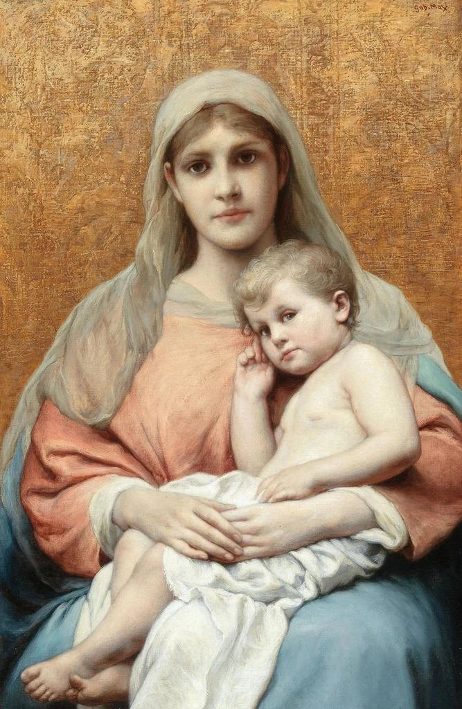 Gabriel von Max, født i 1840, er en tysk maler, hvis værker er præget af en stærk religiøs og mystisk indflydelse. Aktiv i anden halvdel af 1800-tallet, tilhører han symbolismen, der søger at udtrykke dybe følelser gennem sine fremstillinger. Hans fascination af religiøse og spirituelle temaer, samt hans interesse for psykologi, har gjort det muligt for ham at skabe værker, der rører ved den menneskelige sjæl. "Vierge à l'Enfant" er et af hans mesterværker, der illustrerer hans evne til at fange blidhed og fromhed.