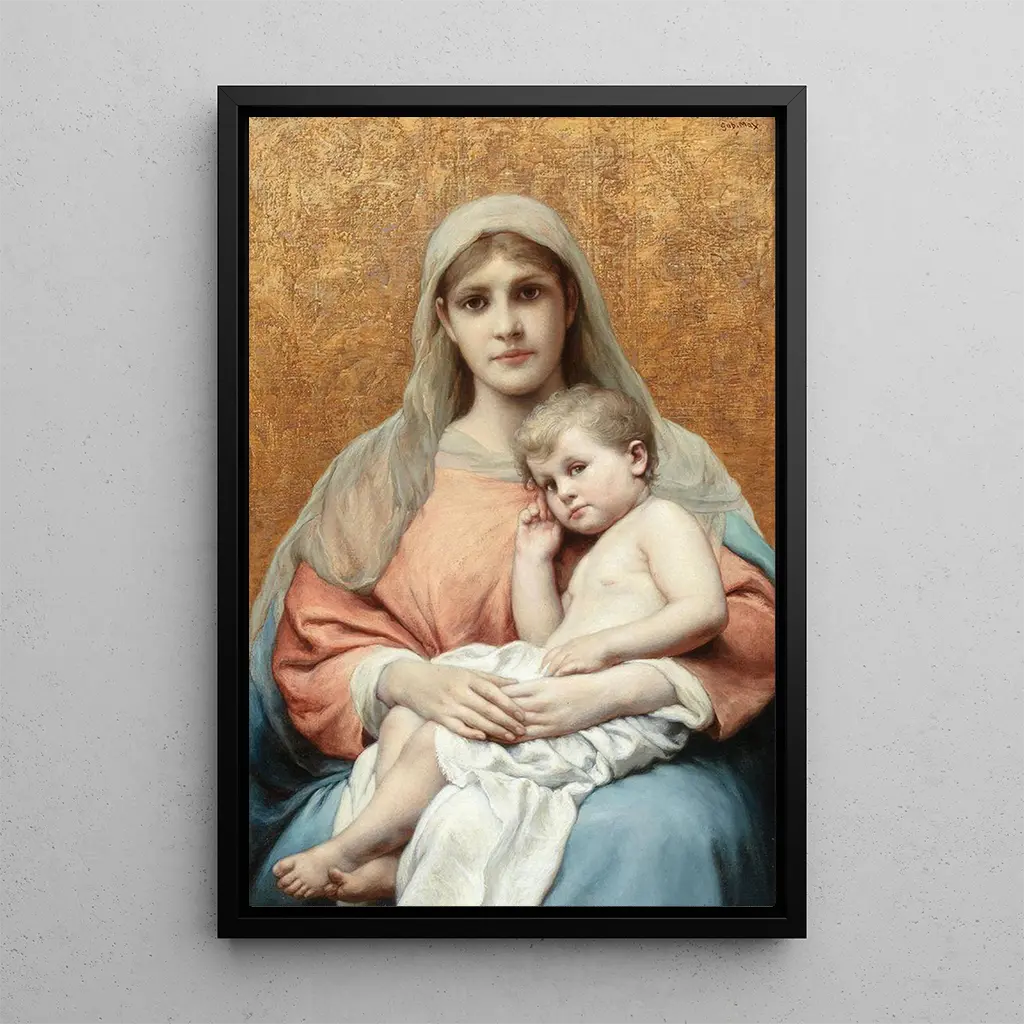 I dette ikoniske værk skildrer Gabriel von Max Jomfru Maria, der holder Jesusbarnet i et øjeblik af blidhed og ro. Kompositionen er præget af varme og lyse farver, der fremkalder det guddommelige lys og moderlig varme. De fine detaljer i ansigterne og tøjet vidner om kunstnerens tekniske kunnen, mens den slørede baggrund fokuserer op denne hellige scene. Atmosfæren, der udspringer af dette lærred, er præget af fred og spiritualitet, hvilket inviterer betragteren til en stilfærdig eftertanke.