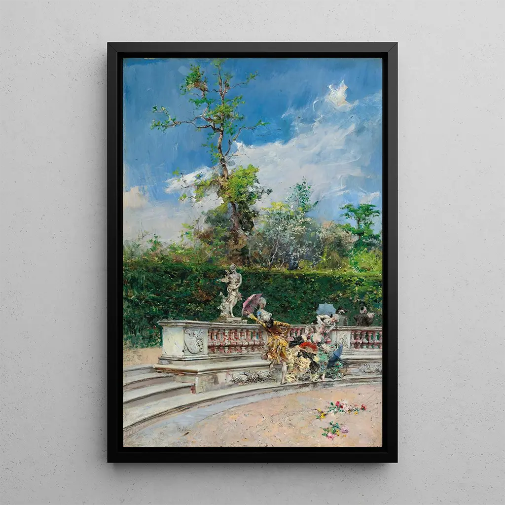 I dette fængslende værk fanger Giovanni Boldini essensen af overklassen gennem en dynamisk og livlig komposition. De rige farver og de flydende penselstrøg giver liv til de pragtfulde kjoler, kvinderne bærer, og skaber en atmosfære af glamour og sofistikeret elegance. Ansigterne, omhyggeligt malet, udtrykker en bred vifte af følelser fra glæde til melankoli, og inviterer betragteren til at dykke ned i en verden af raffinement. Lyset spiller en vigtig rolle, fremhæver detaljerne i stoffet og tilbehøret, mens den slørede baggrund fremhæver de vigtigste figurer og understreger deres betydning.