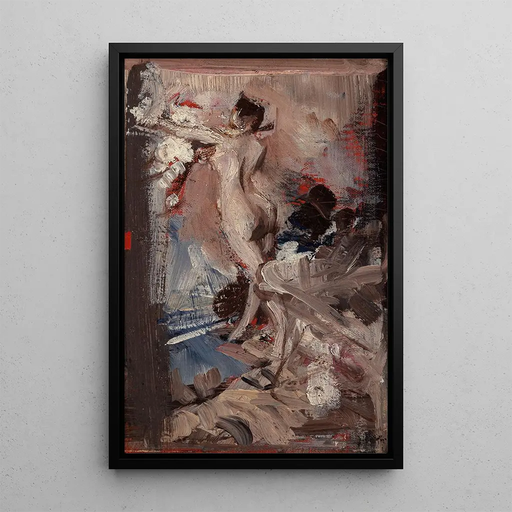 Giovanni Boldini er en italiensk maler, hvis arbejde har præget Belle Époque, en periode hvor kunst og mode smeltede sammen på en ny måde. Født i 1842, opnåede han hurtigt anerkendelse med sin flamboyante stil og sin evne til at fange ånden i sin tid. Influenceret af impressionismen, skabte Boldini levende portrætter, der ikke kun fanger udseendet af hans motiver, men også deres karakter. Hans værk afspejler en tid med forandring og emancipation, hvor skønhed og sensualitet blev fejret i al deres pragt.