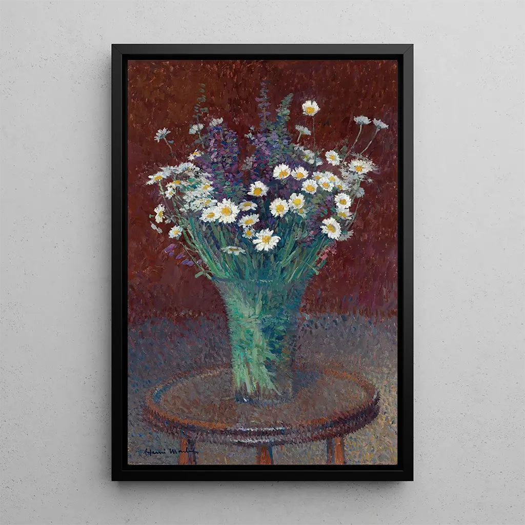 Vase de marguerites : en kunsttryk af forårsfarver "Vase de marguerites" af Henri Martin er et livligt værk, der fanger essensen af naturen. De hvide blomster, strålende af lys, står stolt i en vase med varme, jordnære nuancer. Farvepaletten, der spænder fra gyldne gule til dybe grønne, fremkalder en atmosfære af friskhed og ro. Martins impressionistiske teknik, med sine hurtige penselstrøg og rige teksturer, giver liv til denne blomsterkomposition, og forvandler en simpel buket til en fejring af livets flygtige skønhed. Henri Martin : en mester i fransk impressionisme Henri Martin, født i 1860, er en fransk maler, der formåede at gøre sig gældende i impressionismens bevægelse. Påvirket af kunstnere som Claude Monet og Pierre-Auguste Renoir, udviklede Martin en unik stil, der forener lys og farve med en særlig følsomhed for landskaber og stilleben. Hans karriere strakte sig over flere årtier, hvor han udforskede forskellige temaer, men det er hans evne til at fange blomsters skønhed, der adskiller ham. En kunsttryk af "Vase de marguerites" vidner om hans evne til at forvandle almindelige scener til ekstraordinære kunstværker, hvilket gør ham til en uundværlig figur i fransk kunst. En dekorativ erhvervelse med mange fordele Reproduktionen af "Vase de marguerites" er et ideelt dekorativt stykke til at forskønne ethvert rum, uanset om det er en stue, et kontor eller et soveværelse. Den trofaste trykkvalitet og æstetiske appel gør det til et perfekt valg for dem, der ønsker at bringe naturen ind i deres hjem. Ved at integrere dette kunsttryk i din indretning skaber du en varm og indbydende atmosfære, samtidig med at du hylder Henri Martins kunstneriske arv. Dette lærred er ikke kun et visuelt tilføjelse, men også en kilde til daglig inspiration, der fremkalder den enkle og delikate skønhed af blomster.