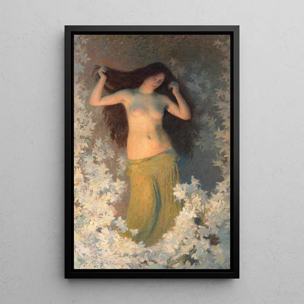 I "Skønhed" giver Henri Martin os et poetisk syn på kvindelighed, hvor lys og farver væves sammen for at skabe en atmosfære af blidhed og ro. Kompositionen, centreret om en delikat kvindefigur, fremkalder en følelse af fred og fordybelse. Pastelfarver og subtile nuancer i lærredet tilføjer en næsten drømmende dimension til værket, hvilket inviterer beskueren til at dykke ned i dette univers af skønhed. Hvert penselstrøg synes at fange et flygtigt øjeblik, en ren følelse, hvilket gør dette kunsttryk til en ægte hyldest til kvindelig ynde.