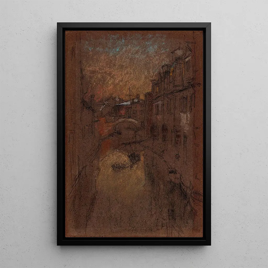 I dette fængslende værk dykker James Abbott McNeill Whistler ned i en vinterscene præget af ro og mystik. De kolde nuancer af blå og grå smelter harmonisk sammen, hvilket skaber en næsten æterisk stemning. Kompositionen er omhyggeligt afbalanceret, med fine silhuetter af nøgne træer, der træder frem mod en skumringshimmel. Whistlers teknik, der prioriterer lys- og farveeffekter, giver dette kunsttryk en følelsesmæssig dybde. Hvert penselstrøg synes at hviske hemmelighederne om en vinternat, og inviterer betragteren til at fordybe sig i denne iskolde fred.