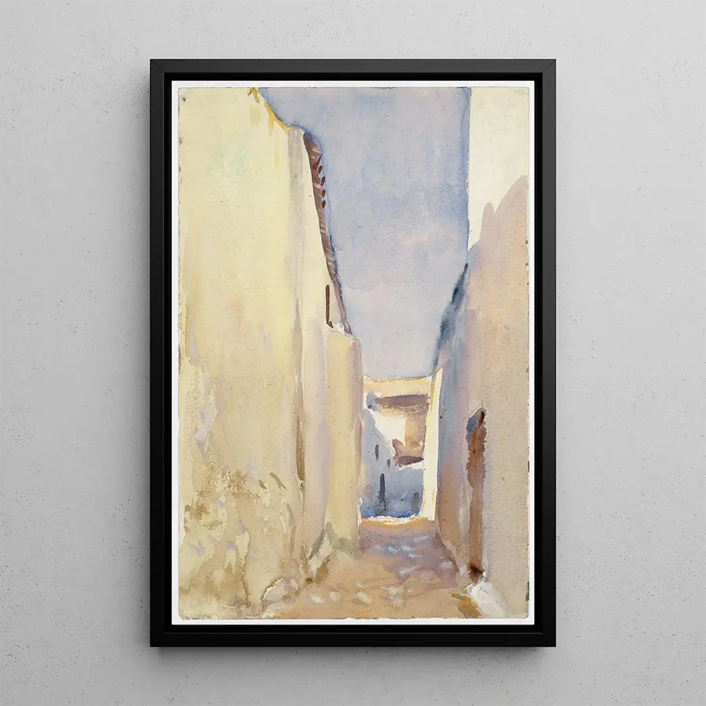 Født i 1856, er John Singer Sargent anerkendt for sine portrætter og landskaber, der fanger lyset på en unik måde. Påvirket af sine rejser i Europa og Nordafrika, har Sargent formået at integrere elementer fra forskellige kulturer i sit arbejde. "tanger" illustrerer perfekt hans interesse for eksotiske landskaber og livsscener. På et tidspunkt, hvor verden åbnede sig for nye påvirkninger, formåede Sargent at skille sig ud ved at kombinere sin impressionistiske stil med motiver, der afspejler den kulturelle mangfoldighed. Hans værk fortsætter med at inspirere og fascinere, hvilket vidner om hans kunstneriske geni.