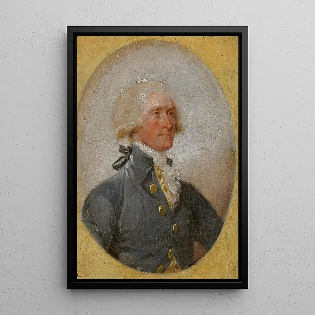 "Thomas Jefferson", et kunsttryk af John Trumbull, skildrer den tredje præsident i USA med bemærkelsesværdig intensitet. Lærredet afslører en eftertænksom Jefferson, med blikket rettet mod horisonten, hvilket symboliserer hans vision for nationens fremtid. De afdæmpede farver og lysspil fremhæver hans ansigt, mens den neutrale baggrund fokuserer opmærksomheden på hans personlighed. Trumbull anvender en realistisk kunsttryk-teknik, der ikke kun fanger de fysiske træk, men også selve essensen af manden, en intellektuel og en visionær. Dette maleri er et ægte vindue til den amerikanske historie.