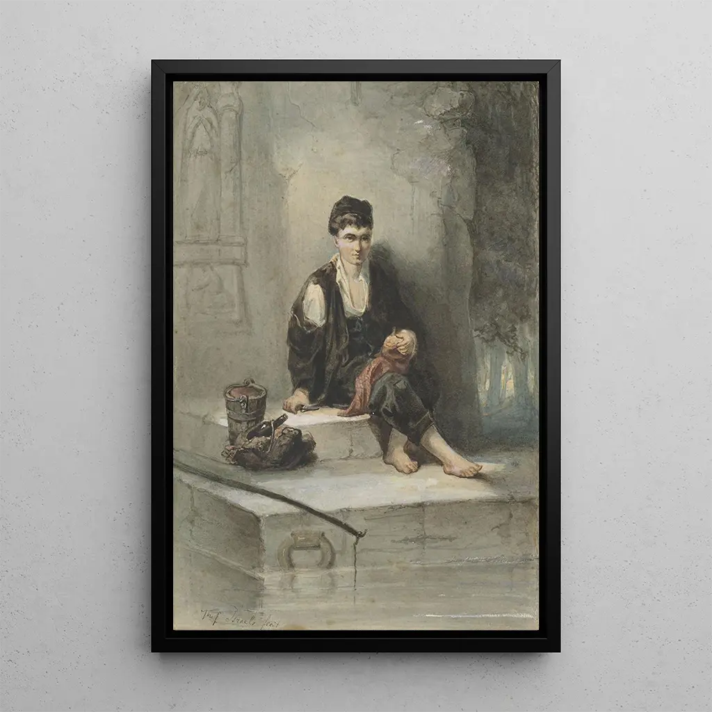 Kunsttrykket af 'Ung fisker sidder ved sit måltid' viser sig at være et klogt dekorativt valg til forskellige rum, såsom stuen, spisestuen eller endda et kontor. Dets varme æstetik og beroligende atmosfære tilføjer et strejf af ro til dit hjem. Kvaliteten af trykket sikrer en bemærkelsesværdig trofasthed, hvilket gør det muligt at nyde hver nuance og detalje i dette værk. Ved at integrere dette lærred i din indretning skaber du et indbydende og inspirerende rum, samtidig med at du hylder kunsten og enkelheden i det daglige liv.