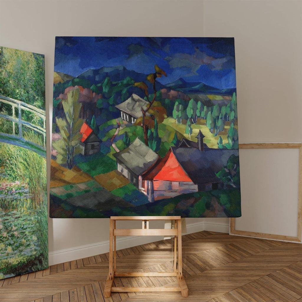Oplev det betagende værk af Konrad Mägi med hans ikoniske stykke fra 1923, Saadjärv Landskab. Dette værk, der er dybt forankret i den kunstneriske kontekst fra 1920'erne, skiller sig ud ved sin dristige brug af farver og sin harmoniske komposition. Kunstneren er kendt for sin evne til at fusionere elementer fra kubismen samtidig med at fange essensen af den estiske natur, hvilket gør dette værk særligt unikt og fængslende.