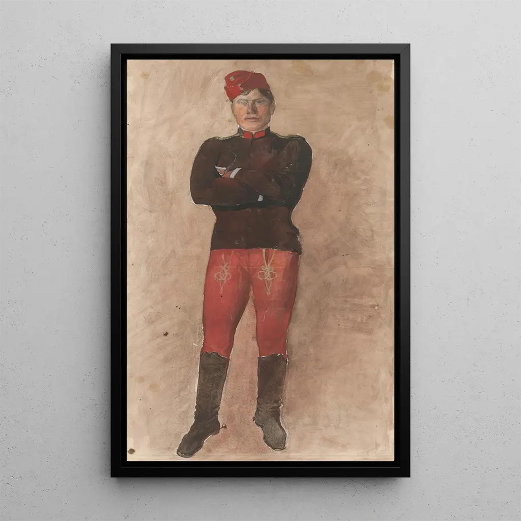 Kunsttryk | Stående soldat med krydsede arme - Ladislav Mednyánszky