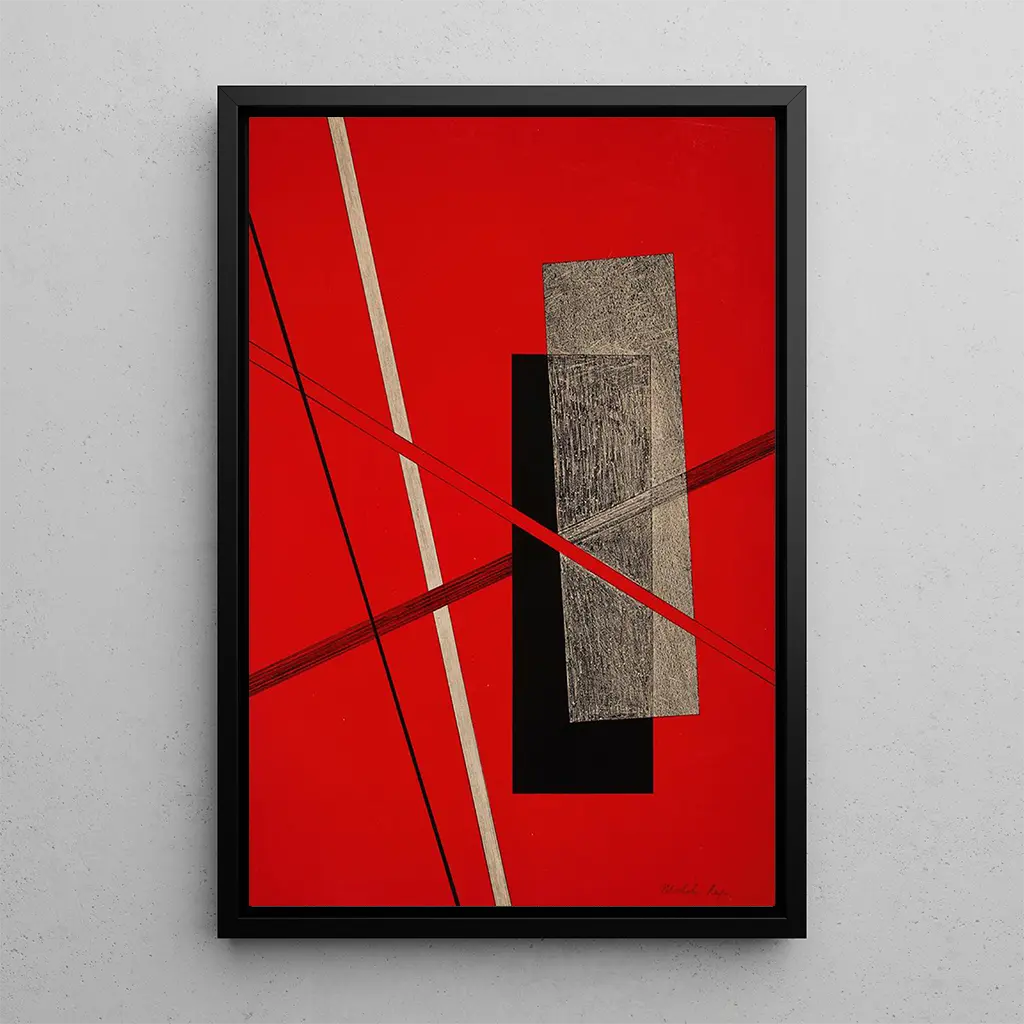 Konstruktion IV: en udforskning af former og farver Kunsttrykket af Konstruktion IV af László Moholy-Nagy tager os med ind i en verden, hvor geometriske former mødes og flettes sammen med bemærkelsesværdig flydendehed. De livlige og kontrastfulde farver skaber en vibrerende, næsten kinetisk atmosfære, der straks fanger øjet. Hvert element i dette værk synes at være i dialog med de andre, hvilket danner en sammenhængende og harmonisk helhed. Den blandede teknik, Moholy-Nagy anvendte, som kombinerer maling og collage, giver dette lærred dybde og tekstur, der beriger den visuelle oplevelse. Dette maleri er en ægte invitation til refleksion over samspillet mellem kunst og rum. László Moholy-Nagy: en visionær af Bauhaus László Moholy-Nagy, født i 1895 i Ungarn, er en ikonisk figur inden for Bauhaus, en kunstnerisk bevægelse, der omdefinerede grænserne for kunst og design i begyndelsen af det 20. århundrede. Influenceret af kubismen og futurismen, søgte han at integrere teknologi og nye materialer i sine værker. Moholy-Nagy var også en pioner inden for fotografi og grafisk design, hvor han udforskede mulighederne med disse medier. Hans avantgarde-vision og tværfaglige tilgang har haft en betydelig indflydelse på moderne kunst, hvilket gør ham til en forløber, hvis indflydelse stadig mærkes i dag. Konstruktion IV er et perfekt eksempel på hans engagement i innovation og eksperimentering. En dekorativ tilføjelse med mange fordele Kunsttrykket af Konstruktion IV er en ideel tilføjelse til at berige din indretning. Uanset om det er i et arbejdsrum, en stue eller et soveværelse, vil dette maleri tilføre et strejf af elegance og modernitet. Det høje trykkvalitet sikrer en bemærkelsesværdig trofasthed over for farver og detaljer i det originale værk, hvilket garanterer en langvarig holdbarhed. Det æstetiske tiltrækningskraft ved dette lærred ligger i dets evne til at integrere sig harmonisk i forskellige indretningstyper, samtidig med at det tilføjer en unik kunstnerisk dimension. At vælge dette kunsttryk er at vælge et stykke, der vil stimulere kreativitet og inspiration i hverdagen.