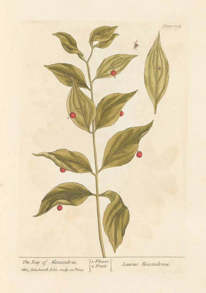 Elizabeth Blackwell, kunstner og botaniker fra det XVIII. århundrede, er anerkendt for sine bidrag til botanisk kunst. Født i 1707 i England, blev hun påvirket af datidens videnskabelige strømninger, der søgte at katalogisere og repræsentere flora og fauna med præcision. Hendes arbejde, især gennem graveringer som den af La baie d'Alexandrie, har gjort studiet af planter og marine økosystemer populært. Blackwell formåede at forene videnskab og æstetik, hvilket gør hendes værker til referencer både kunstnerisk og videnskabeligt, og efterlader et varigt arv i kunstverdenen.