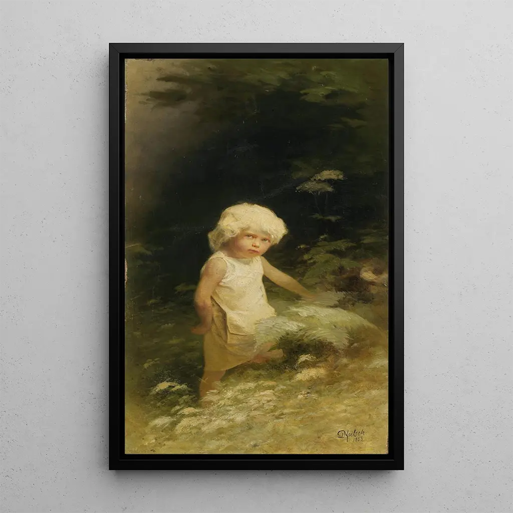 "Hélios i vandretursbeklædning" af Karl Wilhelm er et kunsttryk, der inviterer til flugt og udforskning. Maleriet forestiller solguden, Hélios, i en dynamisk positur, klar til at begive sig ud i naturen. De livlige og strålende farver, kombineret med lyslege, fremkalder solens varme og landskabets skønhed. Wilhelms teknik, der blander realisme og mytologiske elementer, skaber en atmosfære, der er både fantastisk og tilgængelig, hvilket giver beskueren mulighed for at føle energien og livskraften i scenen.