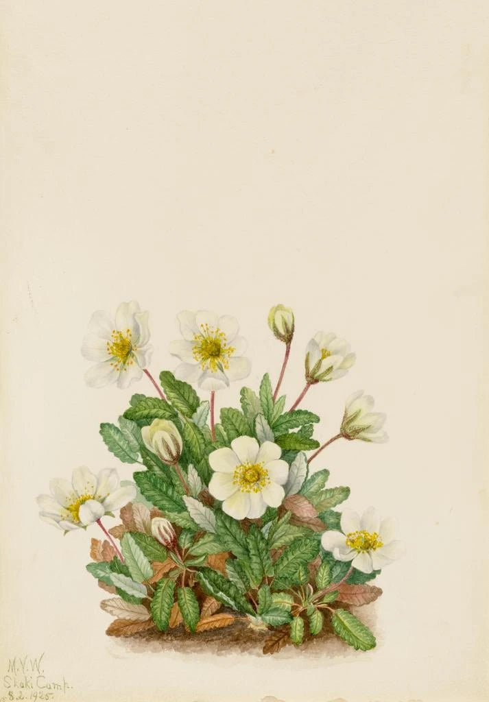 Mary Vaux Walcott, amerikansk kunstner og botaniker, formåede at forene sin kærlighed til naturen med sit kunstneriske talent. Aktiv i begyndelsen af det 20. århundrede, blev hun påvirket af kunst- og håndværksbevægelsen, der fremmede en tilbagevenden til enkelhed og ægthed. Hendes værker, ofte inspireret af den nordamerikanske flora, vidner om hendes engagement i at bevare den naturlige skønhed gennem kunst. Dryade blanche illustrerer især hendes sans for detaljer og evne til at fange essensen af sine motiver. Hendes arv består, hvilket gør hende til en uundværlig figur inden for botanisk kunst.