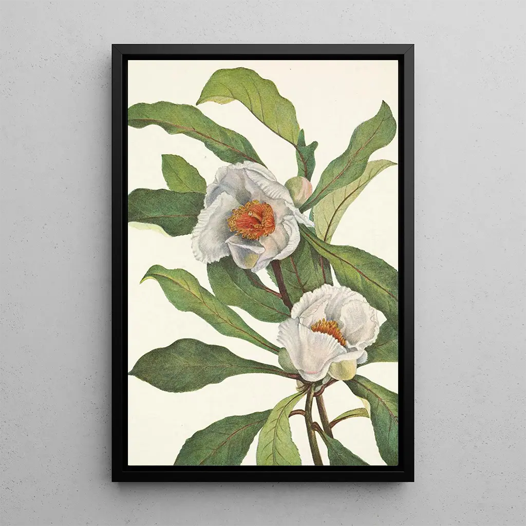 "Franklinia alatamaha" er et fængslende kunsttryk af Mary Vaux Walcott, der fremhæver den flygtige skønhed af denne sjældne plante. Med bløde farver og delikate former fremkalder dette lærred en følelse af ro og nostalgi. Akvarelteknikken giver Walcott mulighed for at lege med lys og skygge, hvilket skaber en næsten magisk atmosfære. Hvert penselstrøg afslører denne udgåede arts skrøbelighed og inviterer seeren til at reflektere over naturens bevarelse og biodiversitetens rigdom.