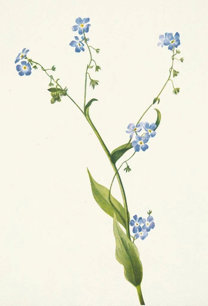 I denne kunsttryk af Lappula diffusa inviterer kunstneren Mary Vaux Walcott os til at dykke ned i en verden af blidhed og finesse. Nuancer af blå og grøn blander sig harmonisk, hvilket skaber en beroligende atmosfære, der fremkalder roen i enge. Akvarelteknikken, brugt med mesterlighed, gør det muligt at fange letheden af blomsterbladene og den delikate struktur af bladene. Hvert detalje er omhyggeligt gengivet, hvilket giver en næsten taktil fornemmelse af denne plante, som om man kunne mærke duften af blomsterne. Dette værk er en hyldest til naturens skrøbelige skønhed, en ægte hyldest til botanik.