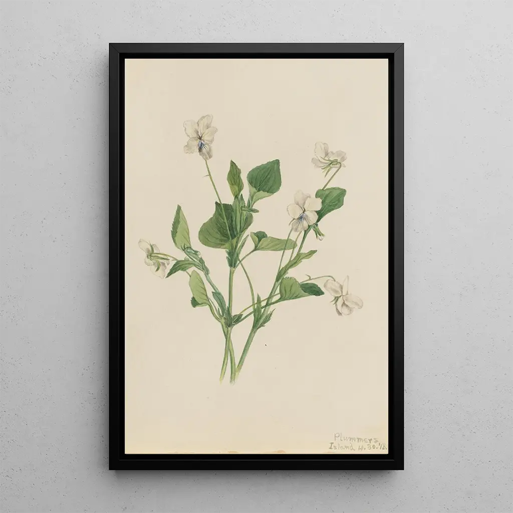 Kunsttrykket Violette crème, eller Viola striata, af Mary Vaux Walcott, fremkalder en subtil og flygtig skønhed. I dette værk blander nuancer af creme og violet sig harmonisk, hvilket skaber et levende maleri, der synes at fange dagslyset. Akvarelteknikken, med sine delikate lag af farver, giver liv til hver enkelt blomst, hvert blad, samtidig med at den bevarer en lethed i luften. Den overordnede atmosfære i lærredet inviterer til en fredelig eftertanke, hvor naturen afslører sin fulde pragt.