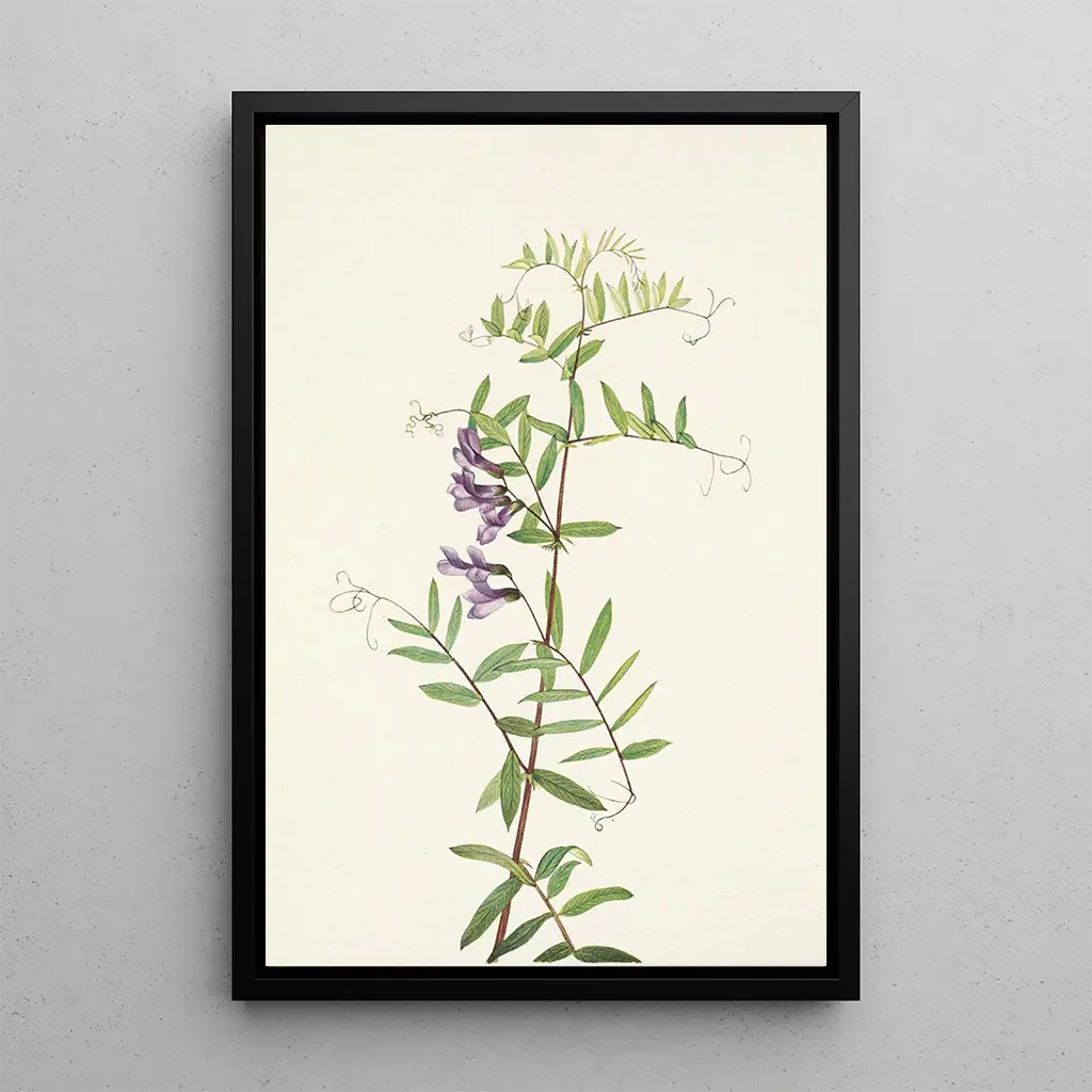 Kunsttrykket af Vesce américaine, signeret Mary Vaux Walcott, er en fejring af den botaniske biodiversitet. Med sine nuancer af lilla og grøn illustrerer dette værk ynde og lethed i denne elegante plante. Akvarelteknikken gør det muligt at fange subtiliteterne i kronblade og blade, hvilket skaber en rolig og indbydende atmosfære. Hvert penselstrøg synes at danse på papiret og inviterer betragteren til at værdsætte naturens flygtige skønhed.