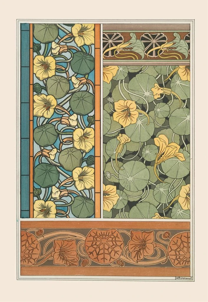 Maurice Pillard Verneuil, aktiv i begyndelsen af det 20. århundrede, er anerkendt for sin rolle i Art Nouveau-bevægelsen. Hans arbejde skiller sig ud ved en nyskabende tilgang til blomsterlige motiver, der integrerer dekorative elementer, som overskrider den enkle gengivelse. Påvirket af tidens kunstneriske strømninger, formåede Verneuil at forene tradition og modernitet, og skabe værker, der hylder naturens skønhed, samtidig med at de passer ind i en moderne æstetik. Hans arv består, og inspirerer mange kunstnere til at udforske blomsterlige temaer med fornyet følsomhed.